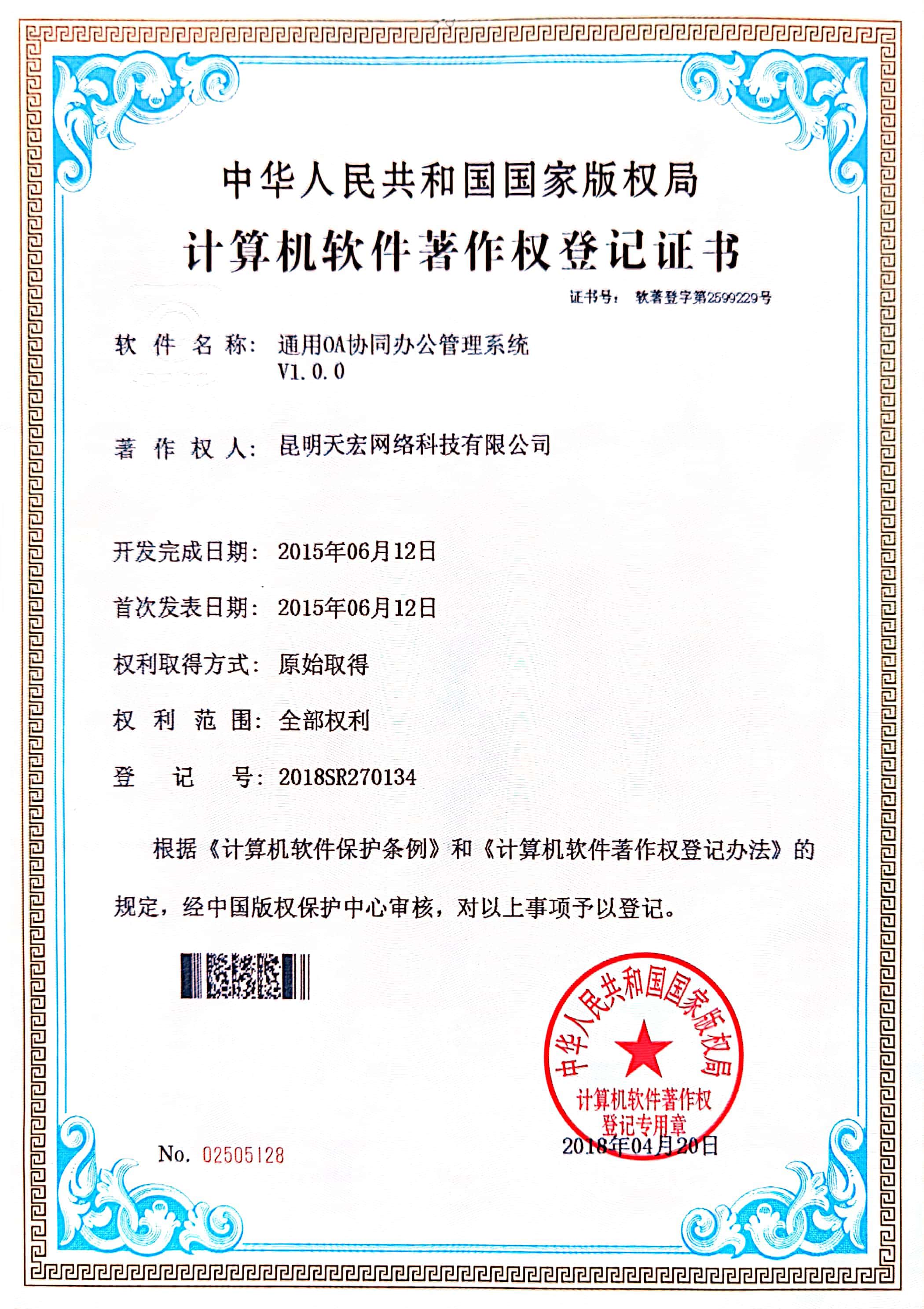 天宏網絡通過不斷的研發(fā)創(chuàng)新,現擁有50多項計算機軟著證書,包括多商家點餐系統、門店收銀管理系統、通用OA協同辦公管理系統、智慧商圈運營管理平臺、天宏健康智慧+系統、同城O2O管理系統等。